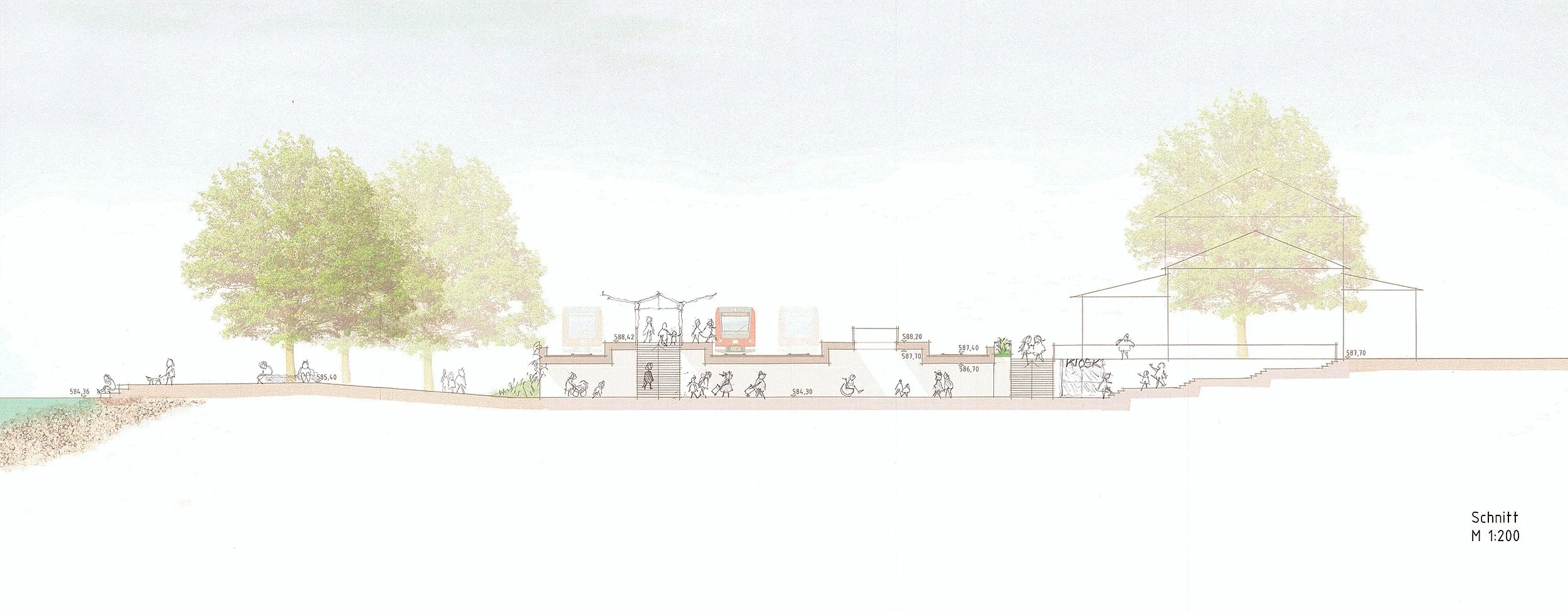 Als Wendegleis bleibt Gleis 1, anstatt Neubau am Oberfeld mit Betriebsbahnhof.
